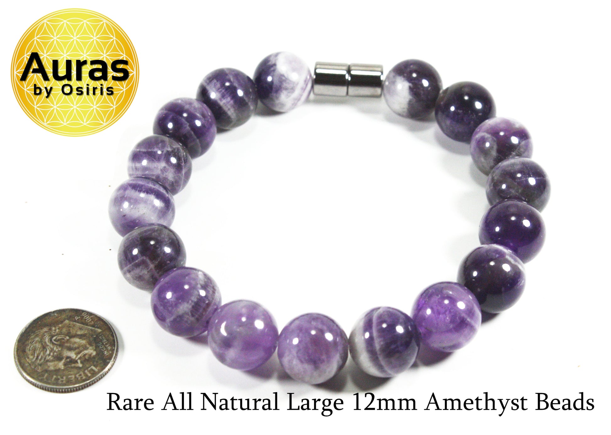 Auras by Osiris 12mm Amethyst Bracelet š | February Birthstone, Focus, Protection & Healing Crystal Jewelry