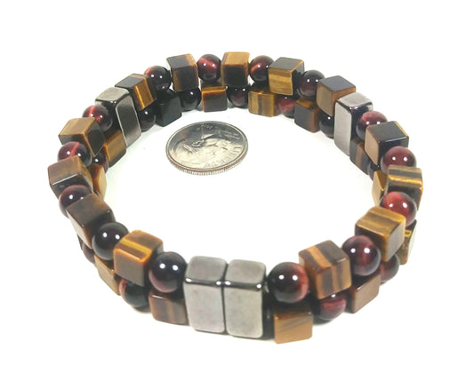 Auras by Osiris Red & Yellow Tiger Eye 2-Row Bracelet 🔥🐅 | Confidence, Motivation & Grounding | Magnetic Clasp