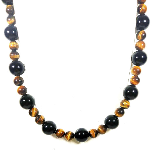 Mens Beaded Necklace - Tiger Eye Necklace - Black Onyx Necklace - Karma Protection Necklace - Anti Depression - Crystal Healing Gemstone Talisman