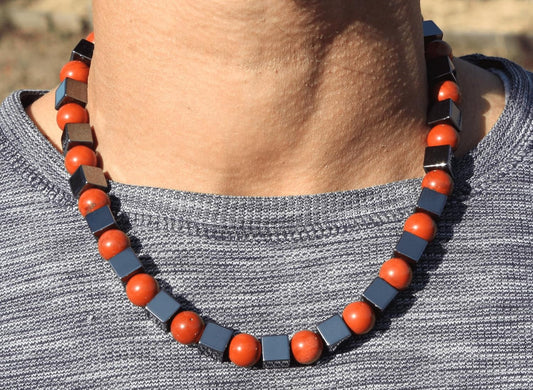 Auras By Osiris Men’s Gemstone Necklace – Handmade 12mm Round & Cube Bead Crystal Jewelry – 19, 24 & 30 Inch Protection & Positive Energy