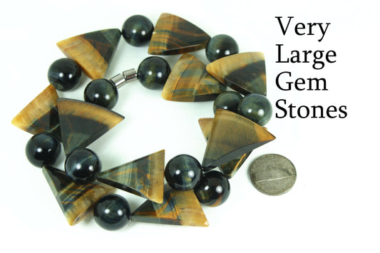 30” Multi-Color Tiger Eye Necklace – 16mm Yellow, Red & Blue Gemstone Beads