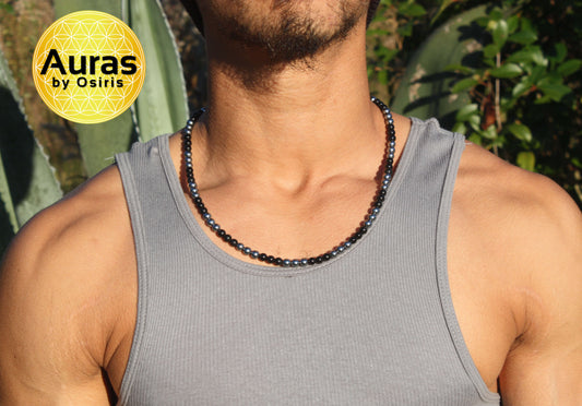 Auras by Osiris Black Onyx Beaded Necklace for Men – Handmade Healing Crystal Protection Necklace | 22" Gemstone Jewelry