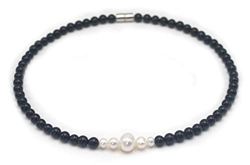 Onyx and Pearl Necklace for Men & Women – Genuine Freshwater Pearl Jewelry with Magnetic Easy-Lock Clasp | Handmade in USA