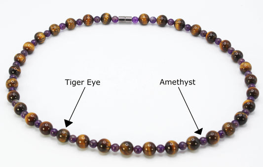 Auras by Osiris Tiger Eye & Amethyst Necklace 🐅🔮 | 6mm/10mm Courage, Serenity & Balance Jewelry