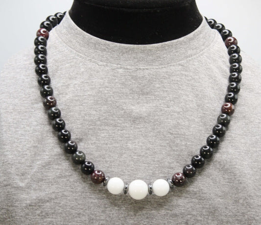 Tiger Eye - Hematite - Mens Beaded Necklace