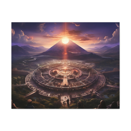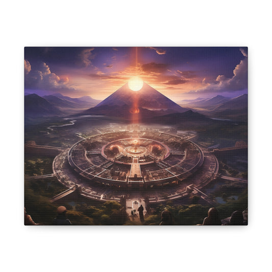 Ancient Mayan Temple With Mountain and Sunset Canvas Spiritual Decor