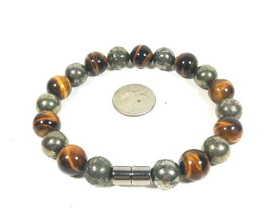 Auras by Osiris Pyrite & Yellow Tiger Eye Bracelet (8mm) 💥🐯 | Incredible Energy, Spiritual Balance, Wealth & Confidence Jewelry (Unisex)