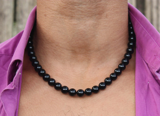 Black Tourmaline Necklace (8mm Beads) – EMF Protection Crystal Jewelry for Men & Women | Handmade Healing Necklace