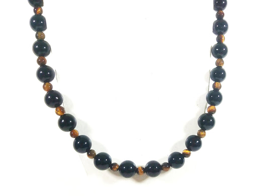 Black Onyx and Yellow Tiger Eye Necklace 19 inch