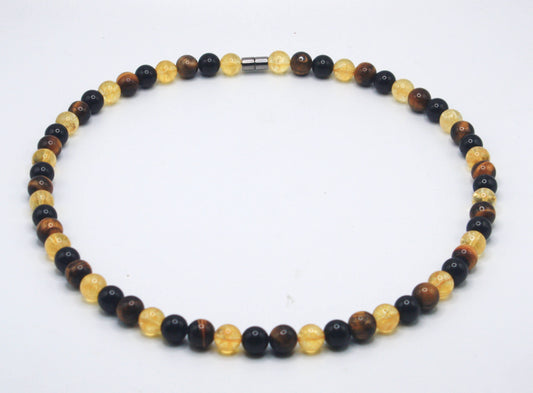 Citrine, Tiger Eye & Onyx Necklace – Handmade Gemstone Beaded Necklace for Men & Women | Abundance, Protection & Confidence