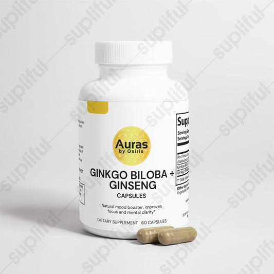 Auras by Osiris Ginkgo Biloba + Ginseng Blend 🌿🧠 | Brain Boost, Energy & Immune Support Supplement w/ 60 Caps for Blood Flow & Mental Clarity