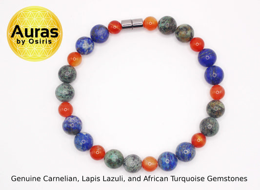 Auras by Osiris African Egyptian Trio Bracelet 🇪🇬✨ | Lapis Lazuli, African Turquoise & Carnelian for Good Luck, Protection & Healing Gemstone Jewelry