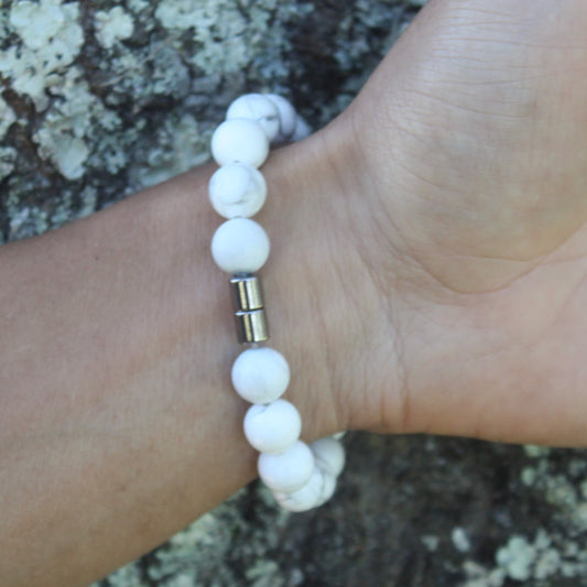 Auras by Osiris 10mm Howlite Bracelet 🧘♀️🕊️ | Serenity, Peace & Calming Mental Chatter Healing Crystal Jewelry w/ Magnetic Clasp (Custom Length, Unisex)