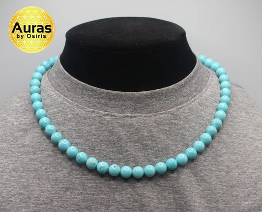 Turquoise Necklace for Men & Women – Genuine Gemstone Jewelry for Protection & Healing | 6mm Beaded Necklace, 22 Inch