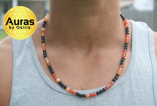 Obsidian & Carnelian Necklace – Genuine Protection & Motivation Crystal Jewelry for Men & Women