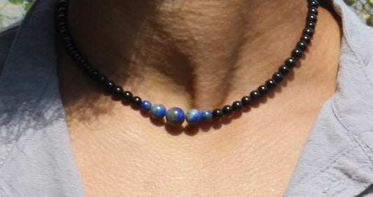 Onyx & Lapis Lazuli Necklace – Genuine Gemstone Jewelry for Men & Women | Healing Crystal Necklace with Magnetic Clasp