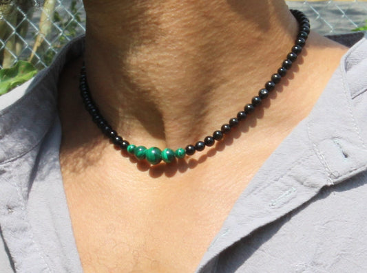 Obsidian & Malachite Necklace – 22" Handmade Crystal Protection Necklace with Magnetic Clasp