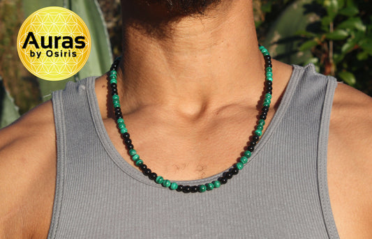 Onyx & Malachite Necklace – Genuine Gemstone Jewelry for Men & Women | Protection & Emotional Healing with Easy Magnetic Clasp
